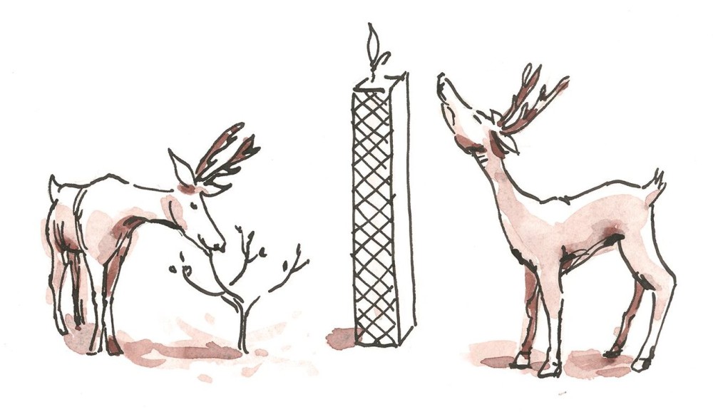 Der Rehbock verliert jedes Jahr sein Geweih. Wenn es im Frühjahr wieder nachwächst, ist es mit einer samtenen Schicht überzogen, die er loswird, indem er sich gegen junge Stämme reibt. Er schätzt speziell die Douglasie mit ihrer weichen Rinde, die nach Mandarine riecht.